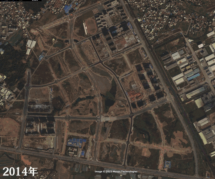 角美核心区在五六年之间,万达商圈、湿地公园、密集路网与成片住区便已拔地而起,以近乎两倍的速度,完成了相似资源密度的城市界面。