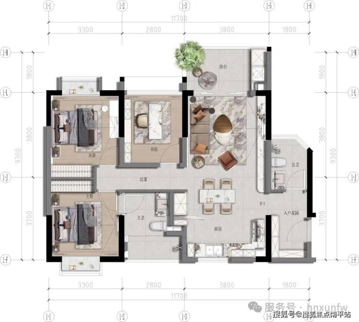 【B3 建面约89㎡,实际使用面积113㎡, 三室两厅两卫】