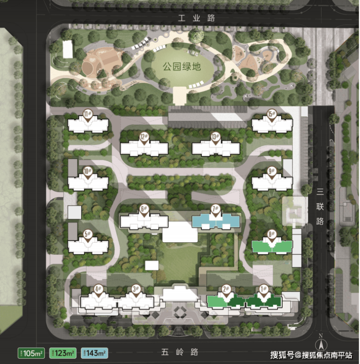 首推的楼栋是1、2、7、8栋,加起来大概140多套。户型面积段在约105-143㎡之间,都是比较实用的改善型面积。