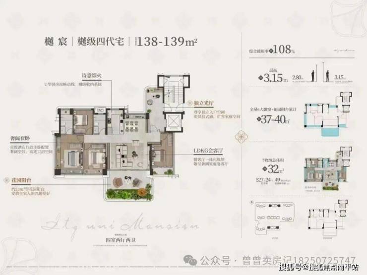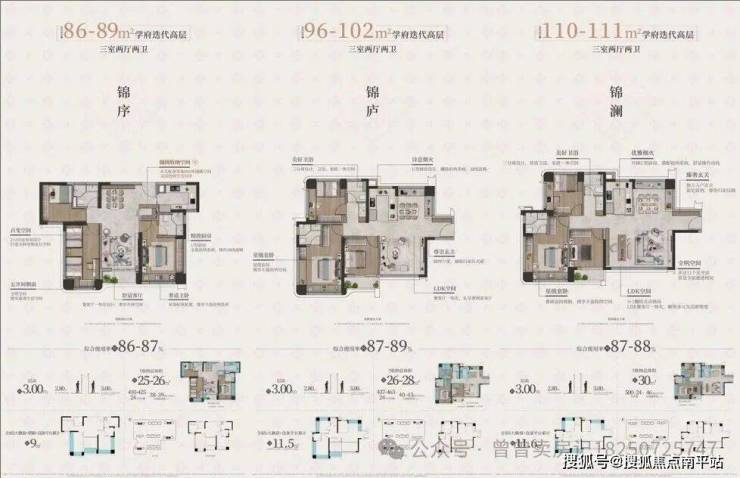 -主打“樾级学府”理念,是翔安首个层高3+住区,高层层高3米,第四代洋房层高3.15米。户型涵盖86-111㎡三至四房高层、132-139㎡樾级四代洋房,综合使用率超86%,部分四代宅达108%。例如139㎡户型配270°环幕阳台、超10㎡入户花园,南向挑高6米天幕大阳台。