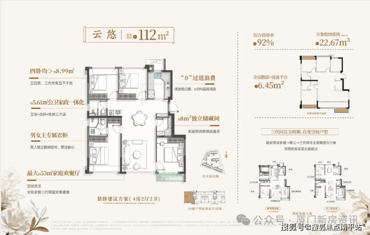 厦门首个四叶草户型 ,厦门首创屋顶花园设计 ,首创万象收纳设计 , 同时规划架空层泛会所亮点十足!今年买房,明年5月住。
