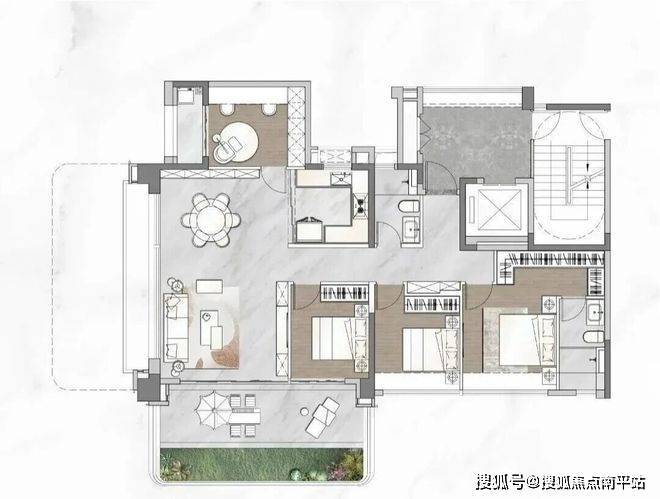 约13㎡独立门厅,约35㎡阔景宽厅,约27㎡主卧套房配超大衣帽间;外接约20㎡空中花园,实际使用面积会比这个更大。