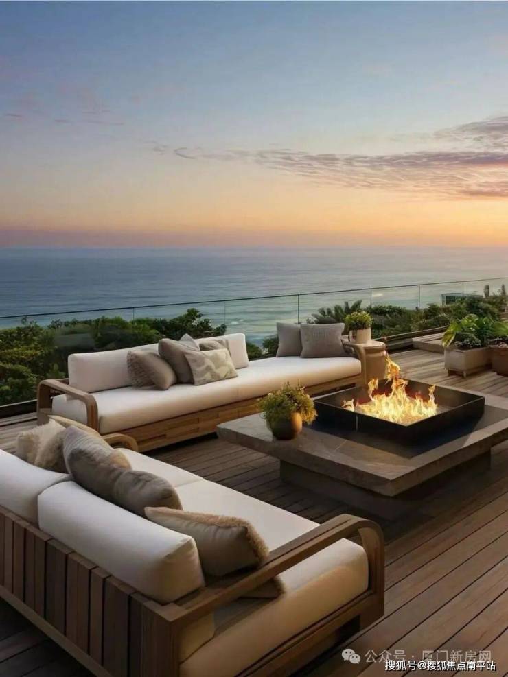 项目占据五缘湾外湾景观 C 位,直线约 38 米直达沙滩,下楼即木栈道、原生海岸,是真正意义上的 “推窗见海”。更难得的是,它采用东向瞰海设计 —— 在五缘湾,东向意味着无遮挡、无西晒,视野纵深感拉满。