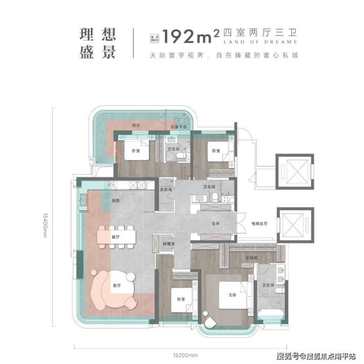 更难得的是 双套房三卫配置,即便三代同堂,亦能各得其所、从容共居。