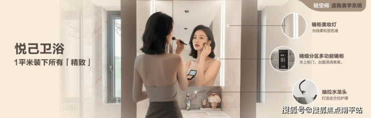 另一方面,掀起小户型卫浴革命,以1.5卫实现淋浴区、马桶区、台盆区单独隔离,1.9卫则兼容了家人们的“洞穴时间”;更精设美妆龙头、美妆灯、镜柜集成收纳模块等细节,为女主人打造站立式美妆提案,让早高峰的通勤不堵在卫浴门口。