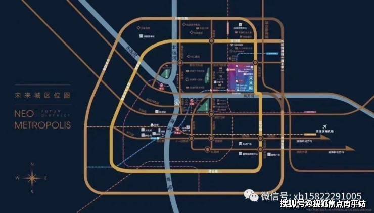 地段上,项目虽然行政区划属于北辰区,但地理位置上与河北区仅一路之隔。同时, 政府大力发展基础建设投资,设立双地铁四站,增加人口基数,2条已建成的地铁线路3、5号线,4个站点,项目各地块到最近的地铁站都在500米以内,是真正的地铁上盖的市区大盘项目。未来城位于天津市北部,属于新快速路以内,处于东纵及志成快速路的交汇处,志成道快速路15分钟内快速通达天津之眼、西站、老城厢;东纵快速路直达万达、红星爱琴海商业区以及天津站;项目还紧邻京津唐高速,连同北京与滨海。