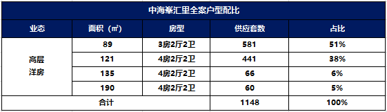 中海峯汇里项目规划8栋14-34层的高层住宅 。总层高13楼—33楼,楼间距29米—42米;户型面积有89平(581套)、121平(441套)、135平(66套)、190平(60套),总套数1148套。
