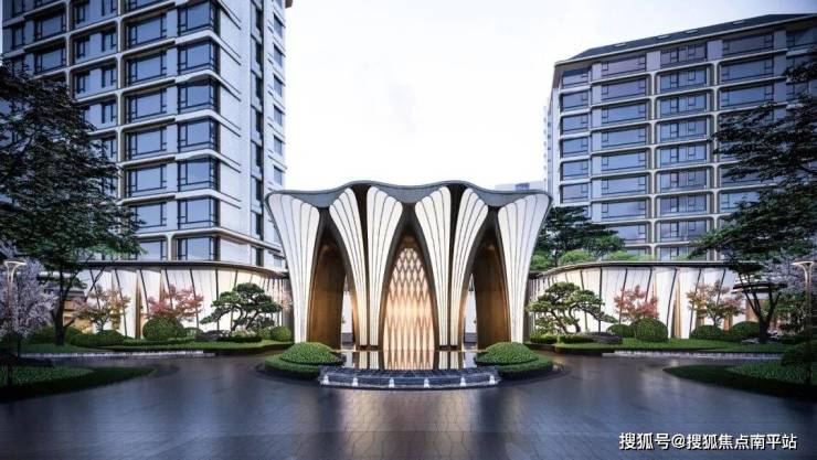 紧接着,一座巨大的「花瓣」映入眼帘,那便是金地·喜悦里的社区大门。