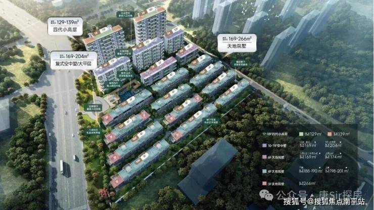 规划17层129-139㎡的四代小高层,11层169-204㎡的复式及大平层,4-6层169-201㎡的叠墅,及3层266㎡的别墅,产品相当多样性。