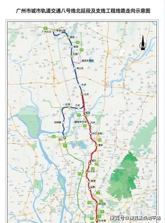 距地铁8号线北延段(在建)雅源站,直线距离约550米(数据来源:百度地图),2站到白云,3站到广州北站;
