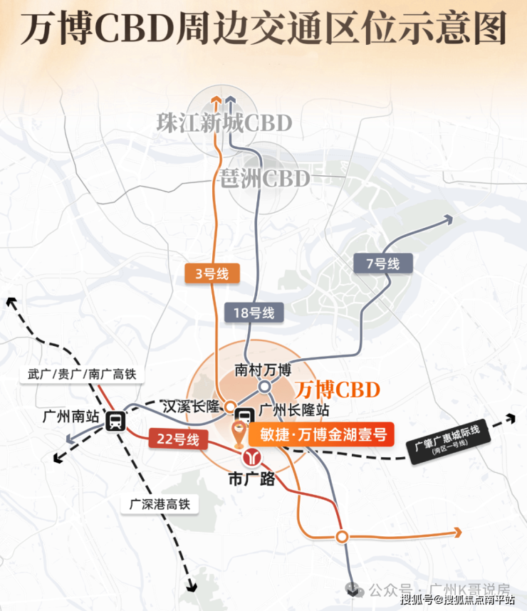 出门约800米即达22号线地铁市广路站(百度地图直线距离),1站番禺广场、2站万博中心、3站琶洲CBD、4站珠江新城;规划中26号线更是潜力可期。