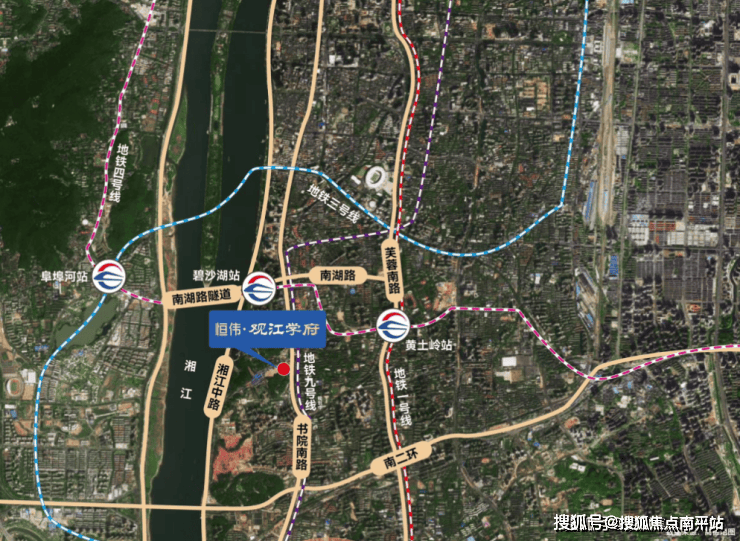 观江学府位于长沙市天心区南湖新城核心区,书院路与南沿路交汇处,项目周边交通便捷