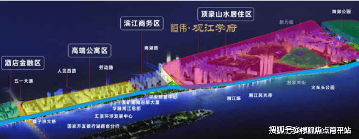 ②南湖新城,湘江东岸的璀璨明珠:长沙城发·南湖新城片区着力于打造“湘江东岸璀璨明珠”,总面积约5.02平方公里,是市委市政府“沿江建设、跨江发展”的重要片区,也是长沙市主城区的核心地带。集聚金融企业总部国家开发银行湖南省分行、湖南银行、长沙平安财富中心;汇聚高端商业汇景发展环球中心、长沙五矿广场、和立东升国际城市客厅;聚集了品质住宅保利国际广场、绿城凤起麓鸣、中海阅湘台等一线临江物业。