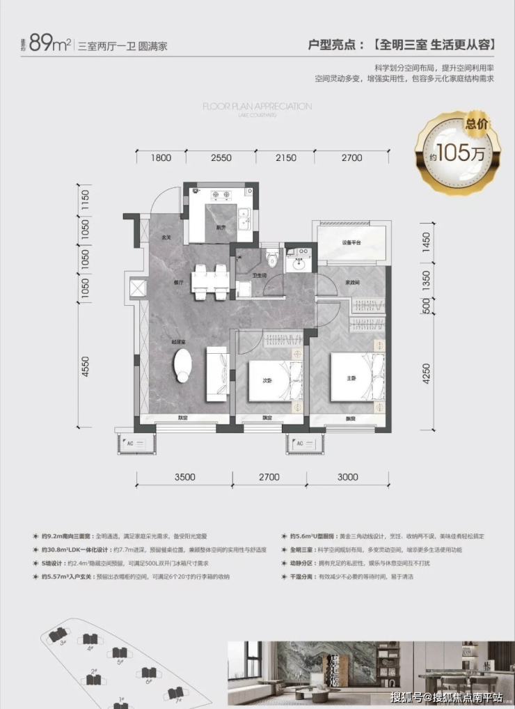 89㎡总价预计105万