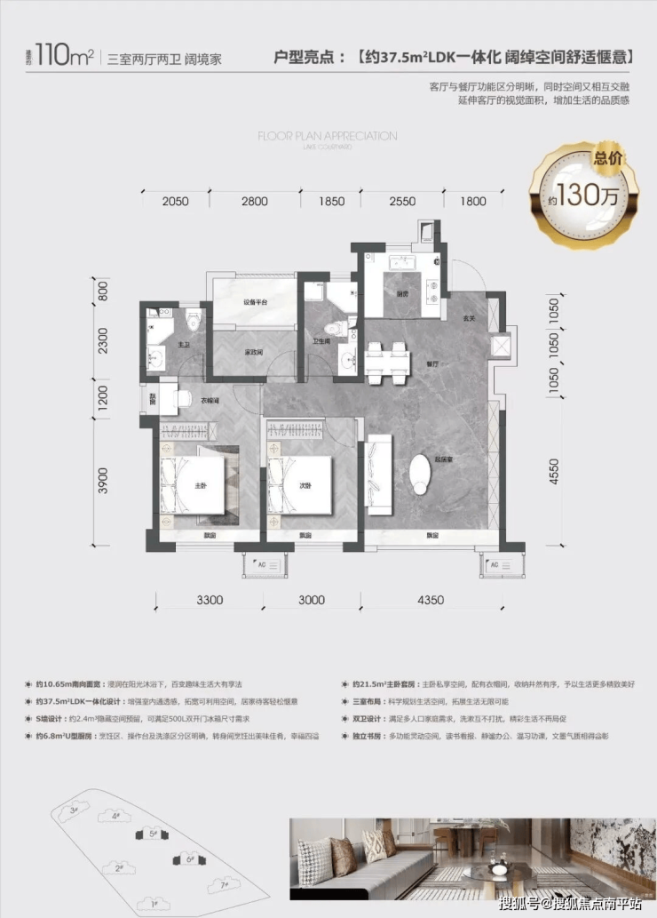 110㎡总价预计130万
