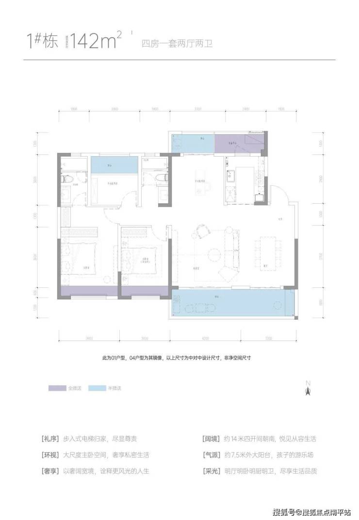 🌟建面约142㎡销冠四房户型空间亮点:✨全景舱宽幕横厅&南北对流通透优居 ↓