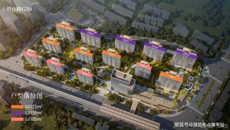 项目拟建1栋办公楼、1栋地铁换乘站房及商办用房、13栋14-17层住宅及相关配套用房,户型建面约105、122、139平,项目地下车库可以直通1/5号线地铁竹山路站。