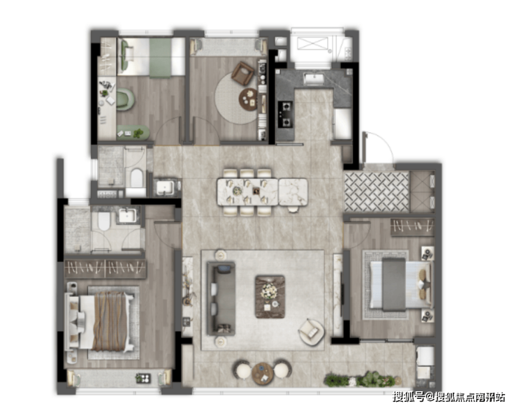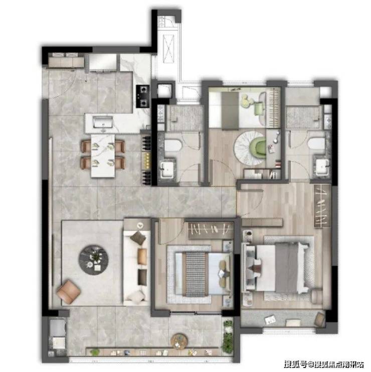 主卧星级套房设计,约3.85米超大面宽 ,区域内同面积段户型中私密与尊享兼备。