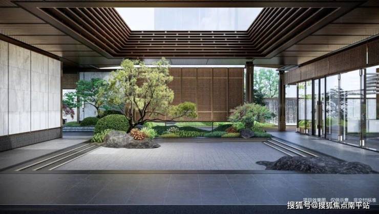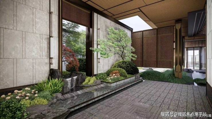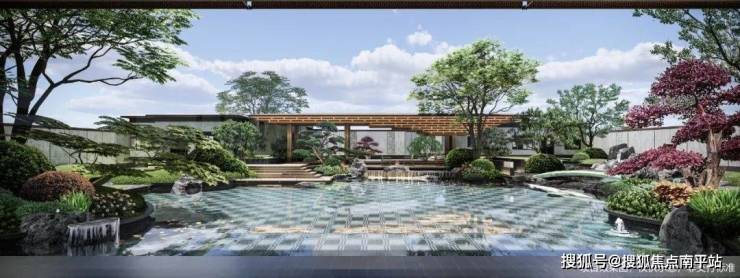 在园林营造上,建发·鲤悦展现出令人惊艳的"度假式"景观理念, "四水归堂"的中式水院,精选造型置石打造冥想空间, 廊、桥、亭、榭等传统元素巧妙串联,沐光水院与私享院落相映成趣,这些设计不仅再现了江南园林的诗意,更让业主在家门口就能享受到"可观、可游"的度假体验。