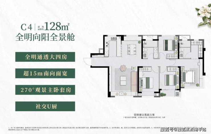 超15米朝南4面宽,向阳舒居,打造正4房奢享主卧套房,以全明格局和科学动线,实现舒适性与功能性的完美统一。
