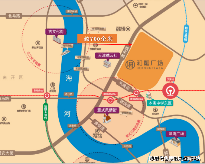 除了周边城市文化旅游地标,紧邻和融广场的地铁2号线,更是将天津主要繁华地段串联,建国道站可以一站直达天津站,对于外地游客来说更加便捷,让和融广场的价值进一步腾飞。