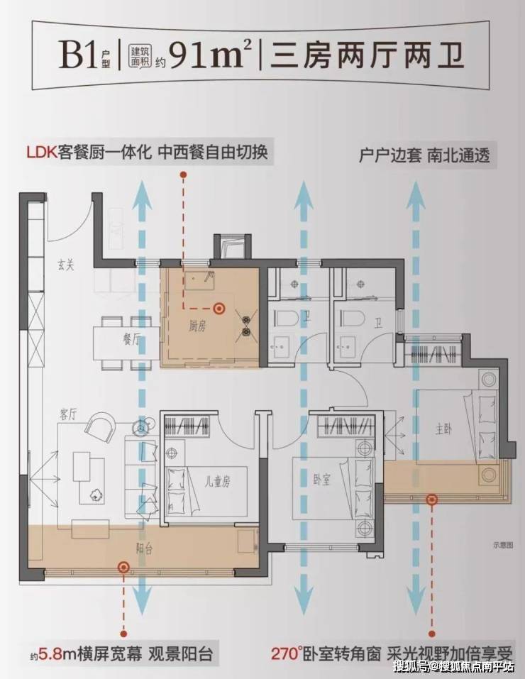 【产品特色】品质精装/LDK厨房270度卧室转角窗/全屋中央空调/一体化智能马桶