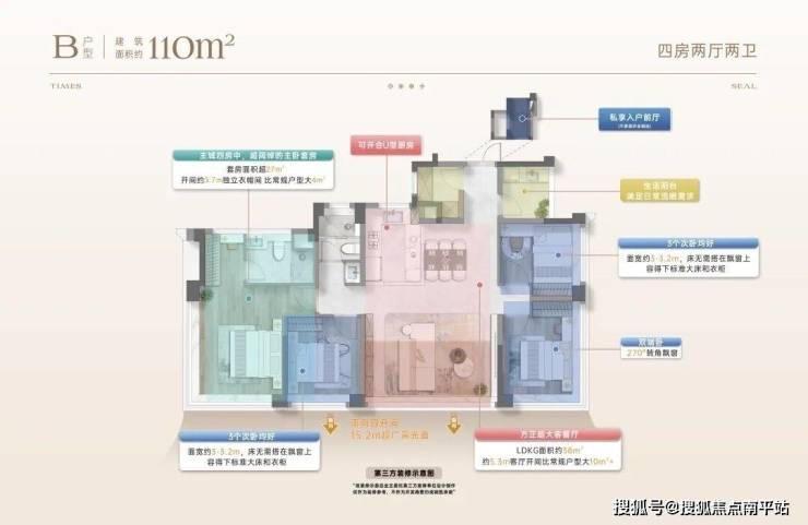 项目加推1栋建面约110㎡智慧住宅,所有户型均采用四房两卫设计,空间利用率远超传统户型。