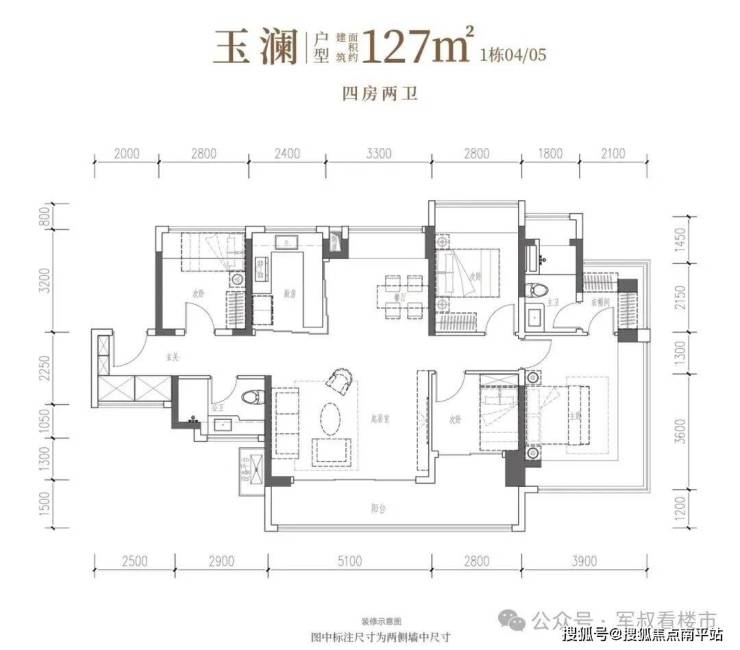 约107㎡四房,坐拥约13.8米南向宽幕视野,尽享LDKB一体厅与多转角环幕瞰景,奢享通透人生。• 玉澜·建面约127㎡4房2厅2卫:南向四开间,南北通透,约14.7米IMAX光幕,独立衣帽间