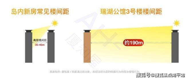 其次,是它190m级别的宽阔楼距。我们盘点了下,超80m的楼间距,在岛内其他在售新房中,通常要180㎡+的楼栋才可能拥有。