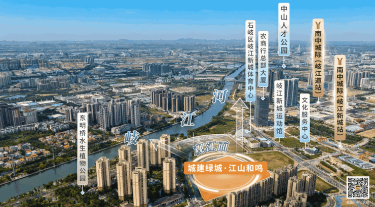 项目位于石岐总部经济区内,直线距离南中城际岐江新城站约200米(数据来源:百度测绘)。