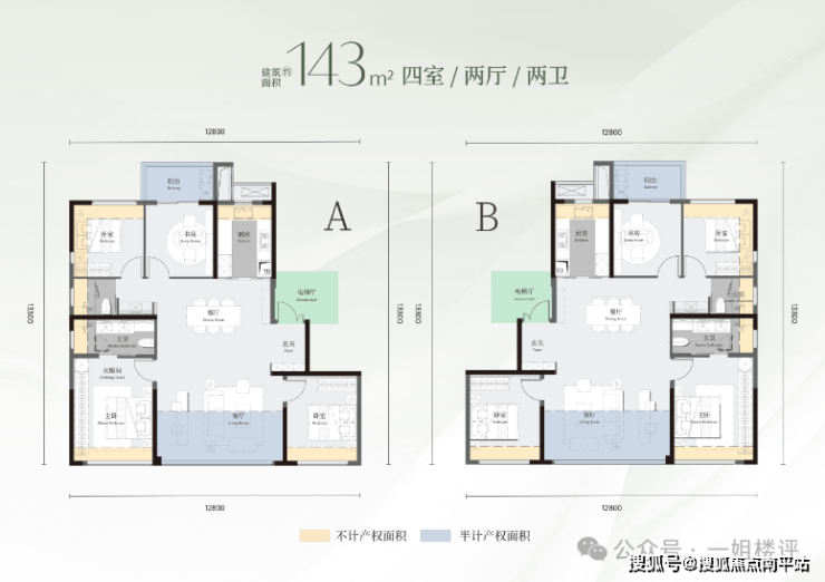 建面约143平户型位于3号楼中,这个户型南北双阳台,北侧次卧外面带有生活阳台,南向大开间。