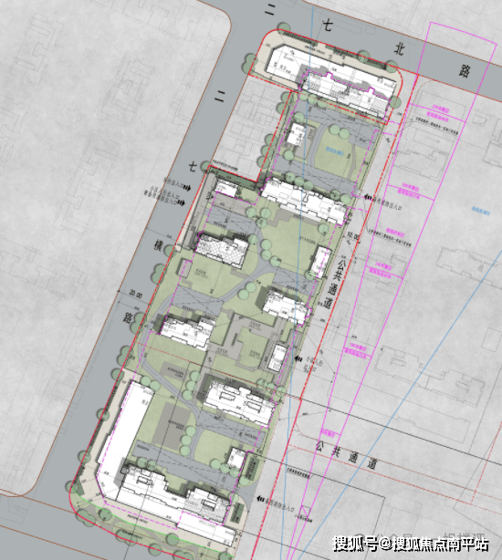 从二期平面图来看,所有住宅南向偏西朝向,1号楼小高层在地块北侧,还有两栋小高层在西侧二七横路沿线。