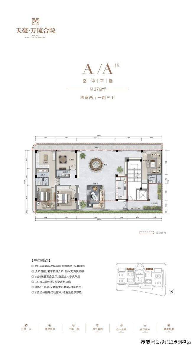 产品户型:建面约230-246㎡花园式合院,建面约276㎡空中平墅