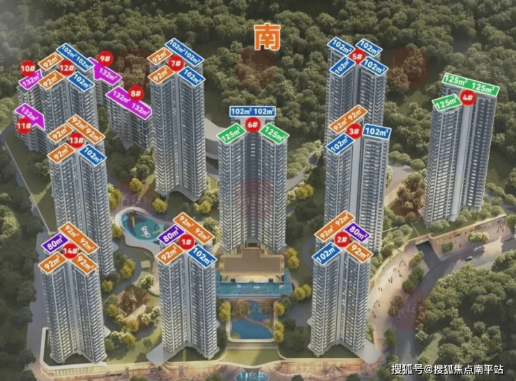 项目一共14栋楼,有4栋7-9层的小高层,有10栋25-31层的塔楼。这10栋中有6栋是2梯5户,3栋是2梯4户,1栋是2梯3户。没回迁房没人才房。一楼书吧花园,二楼健身中心,三楼无边际永池四楼才开始是住宅。