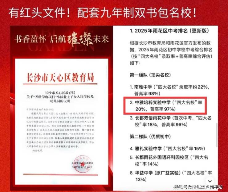 3️⃣、红头文件加持📜 #双名校无需派位!【湘府英才益清小学(已开学)+中雅培粹未央中学(在建)】 ⚠️今年买,今年读❗️全龄教育一步到位,学位房客户必入!