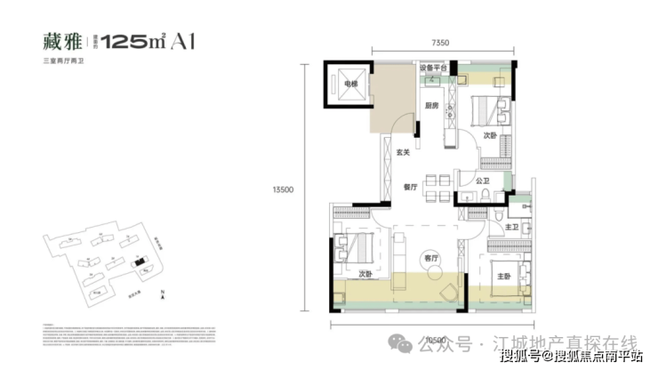 带独立电梯前室,3个卧室朝南,餐客厅一体全景舱设计,270°采光视野。