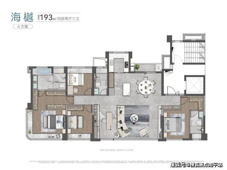 ◉国贸海上鸣樾共328套,主推建面约为130-143平4房2卫、168-180-193平4房3卫五种户型,容积率约2.4,车户比约1.33:1,国贸物业服务,23-25层全2梯2户板楼设计!