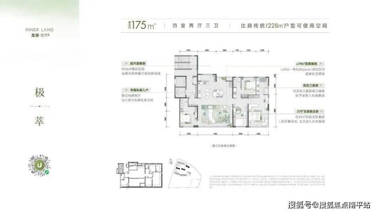 建面约175㎡270°负公摊全景舱则更显极致:约79㎡超体社交场、约26㎡米其林级餐厨空间,为高端社交与家庭聚餐提供阔绰场域;专属私梯入户搭配独立电梯前厅,给予全家人松弛奢适的专属空间;270°全景舱主卧,配备女王步入式衣帽间与环幕采光,整个户型比肩传统建面约228㎡户型的使用面积,让每一寸空间都承载品质生活的无限想象。