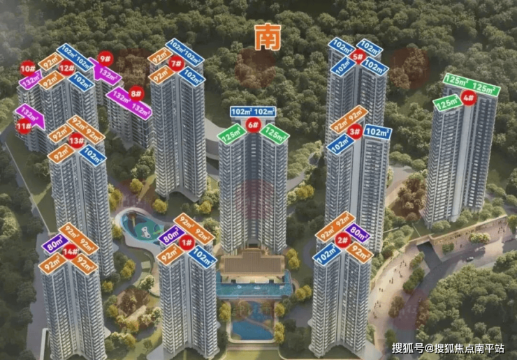 规划户数:1346户,全南向户型
