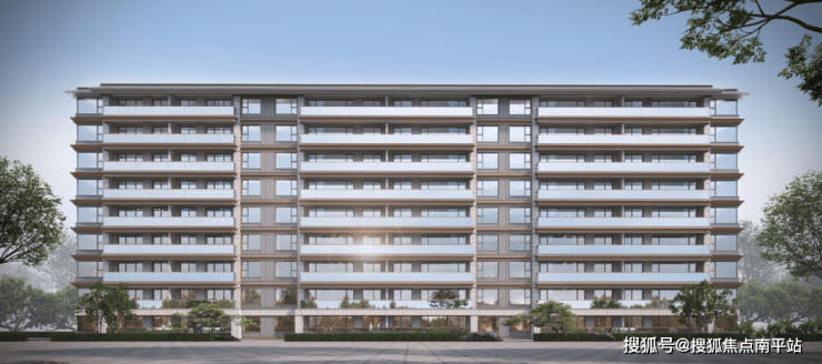 南向开敞阳台首开板块先例,玻璃与铝板两种材质的应用,将通透灵动的光幕线条与金属光泽完美融合。叠拼的阳台增加了传统建筑中勾栏构件与竖向立杆,超大窗墙比叠加浓厚的东方韵味,整个建筑既隽永又耐人寻味。