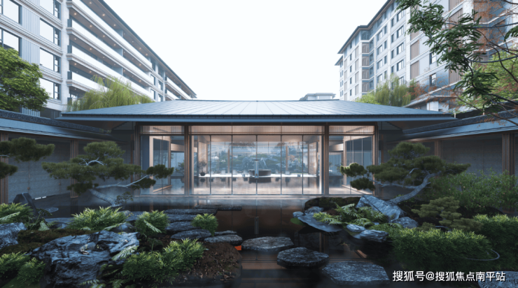 在颜值上,采用光幕美学立面,搭配质感铝板材质,倒映出城市天际线。同时,造型屋顶也与社区整体的宋代风格相得益彰,勾勒出立体时尚的建筑轮廓。在功能上,项目的创新点绝非架空层一处,专属院落、开放式阳台同样是项目的一大亮点。