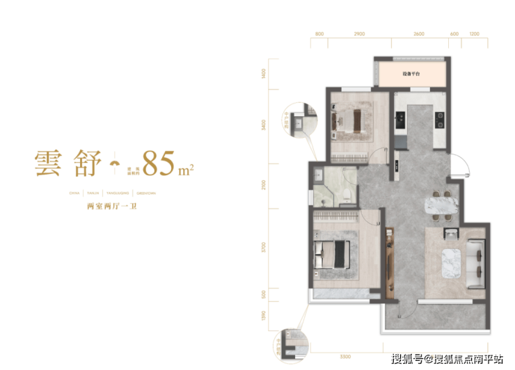 约85平米的小户型,客厅开间也能达到约4.8米。