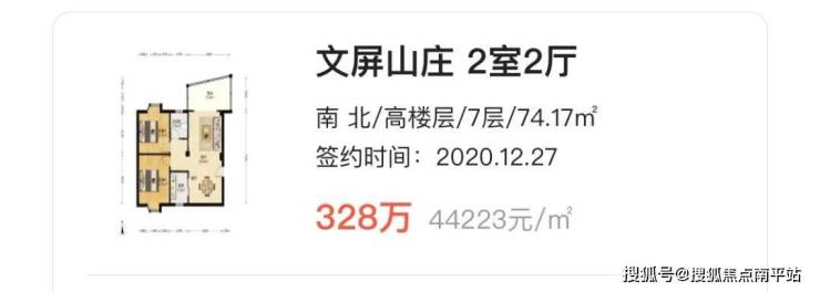 思明文灶——文屏山庄,74.5平2房,成交单价19866元/平,成交总价148万;2020年同户型成交单价44223元/平,成交总价328万;5年时间,总价调整了180万。