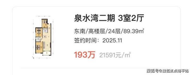 集美桥头——泉水湾二期,89.39平3房,成交单价21591元/平,成交总价193万;2023年同户型成交单价39446元/平,成交总价350万;2年时间,总价调整了157万。