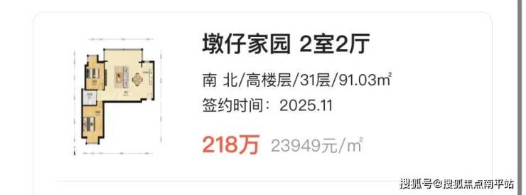 思明金鸡亭——墩仔家园,91.03平2房,成交单价23949元/平,成交总价218万;2021年同户型成交单价47870元/平,成交总价455万;4年时间,总价调整了237万。