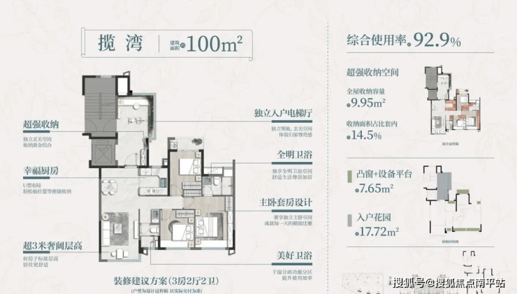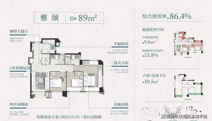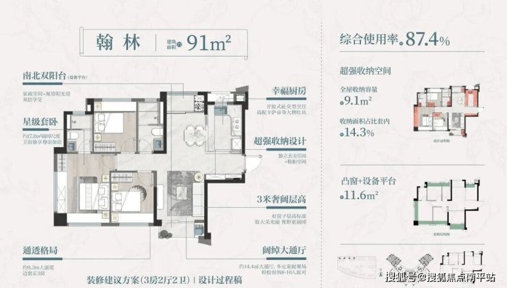 厦门90㎡面积段在售新房中唯一南北双阳台,综合使用率达到87.4%,比市面高出10-12%!5.2米超长厨房台面,四扇通高玄关柜,三卧室大容量通柜,实现了同级产品中最强收纳!