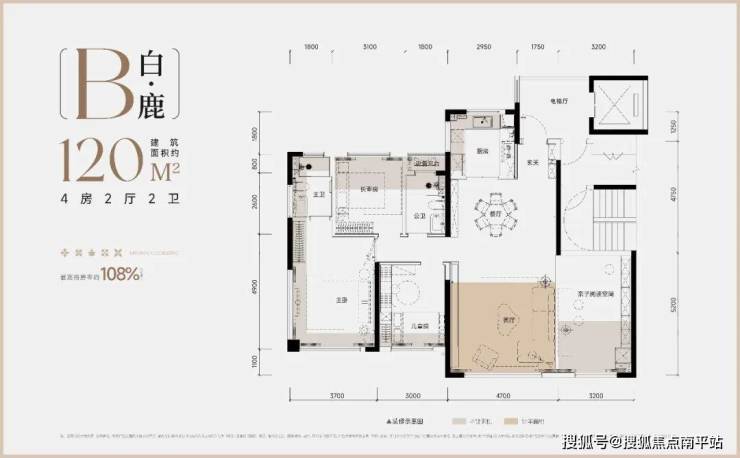 第四,产品适配刚需刚改,得房率是惊喜。楼盘主力户型 100-165㎡,涵盖三房和四房,刚好覆盖刚需首套和中等改善的需求,3 米层高、全封窗设计,2 梯 2 户无连廊 + 私梯入户,光是这个梯户比,在刚需盘里就很能打。更惊喜的是得房率(含电梯厅)达到 103-115%,意味着花同样的钱,能享受到更大的实际使用面积,对于刚需家庭来说,性价比直接拉满。