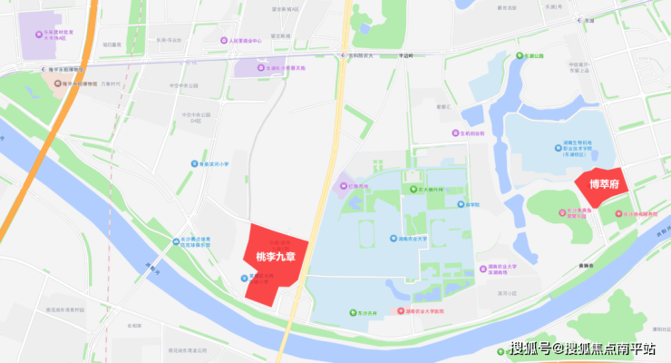 生态环境拉满,主城区难得的宜居盘。在寸土寸金的长沙主城区,能同时拥有湖景、河景、公园的楼盘本就不多,博萃府算是其中一个。西侧是 840 亩的东湖生态公园,南侧 300 米就是浏阳河风光带,下楼就能到季高兔窝窝亲子乐园,还有湖南农业大学的油菜花田作伴,“一河一湖一乐园” 的生态格局,不管是日常散步、周末遛娃,还是饭后休闲,都能满足,宜居性直接拉满。