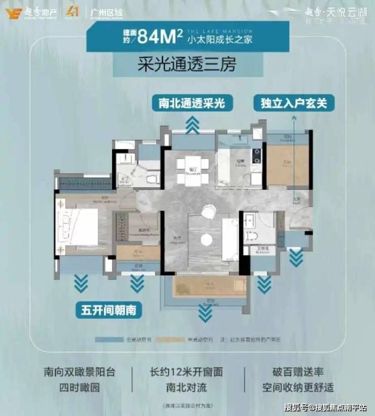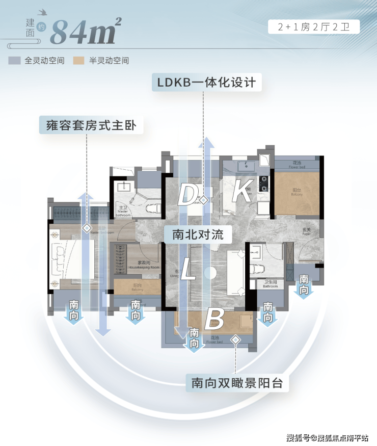 建面约84㎡2+1房,拥有12米南向面宽+南向阳台,南北对流,还具备12个全灵动/半灵动空间!
