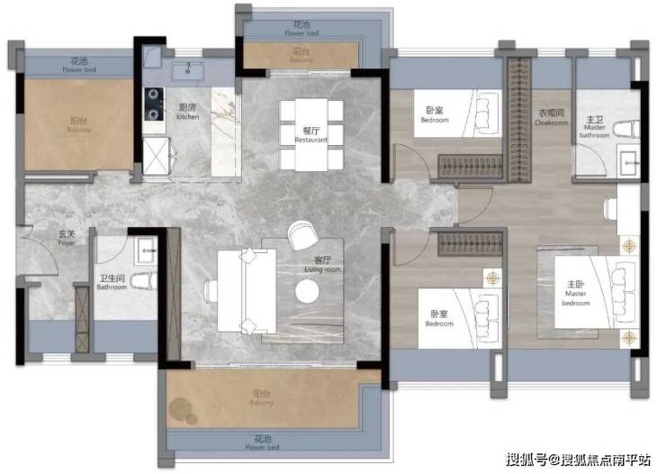建面约95㎡3+1房,LDKB一体化设计,阔绰舒展的五开间朝南,约26㎡酒店总统式主卧套房,还能灵动布置X空间。